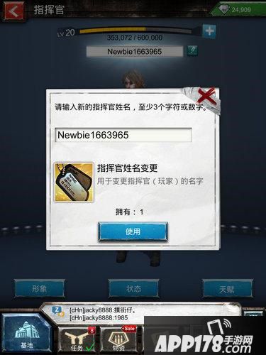 当我们加入联盟后,有的联盟为了体现组织性,会需要成员修改ID,可能会有一些朋友不知道如何修改,在这里简单说明一下,要修改ID,先进入基地界面,然后点击自己的“指挥馆”头像,之后在3D人物形象的头上有ID,就在这里修改。需要道具,价值40钻。
