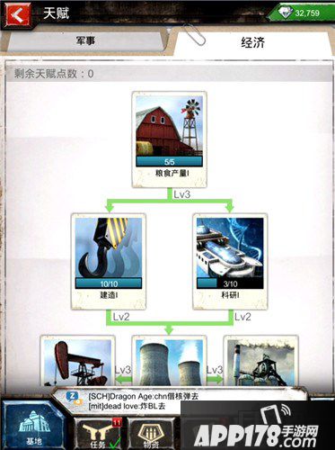 首先先来了解,都有什么技能。经济线有:粮食产量、建造、科研、石油产量、能源产量、钢铁产量、现金产量、采集速度。一共这么几类,其中还有强化分支,如,粮食产量2和石油产量2这样的。由于过多的强化分支,虽然看上去种类不多,但实际要点的技能是很多的,所以要更有效率的分配有限的天赋点。