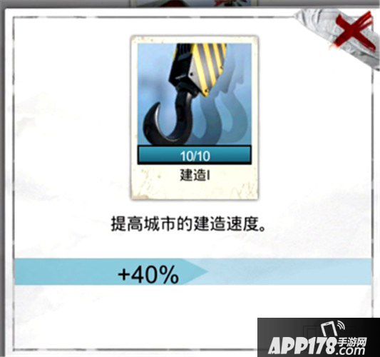 《Invasion》是一款经营游戏,我们大部分的时间都消耗在设施建造和升级中,并且游戏中只能建造和升级一个单位,所以提升建造速度这个技能必须点满。10级可以提升40%,效果是很让人满意的。
