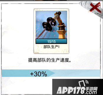 这个技能和经济线的差不多,可以提升部队的生产速度,这款游戏就是耗费时间,所以省时间的技能必需点满。满级后可以提升30%的生产速度,很划算的。