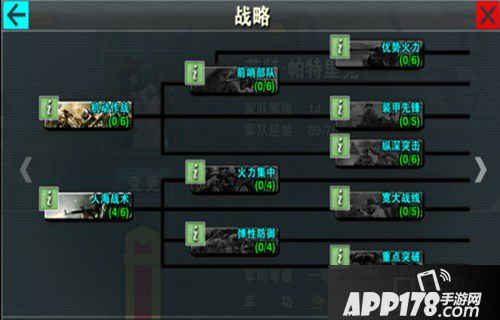 伴随着每次军衔升级,玩家会获得2点战略点数,可以使用战略点来增加战略技能,增强指挥官能力,目前游戏中的战略技能主要有以下几种: