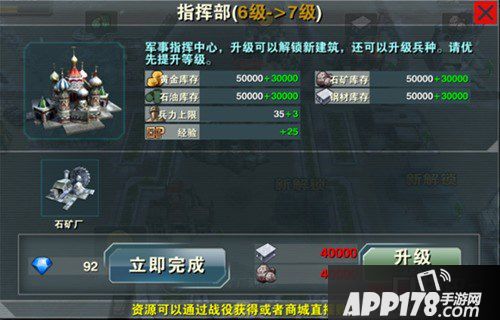 优先提升主建筑等级。毋庸置疑,主建筑一定是最优先需要升级的,主建筑升级后可以解锁更多的建筑、兵种、科技、资源上限以及兵力上限。因此只要资源充足的前提下,果断的升级主建筑吧,不过要提醒一句,主建筑的等级是和指挥官等级关联的,因此闲暇之余请多多升级建筑来提高指挥官等级吧。