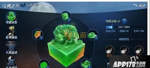 (1)琉璃之角中当前有四大神器,分别是:传国玉玺、乾坤战槌、不死血樽、九天羽冠;