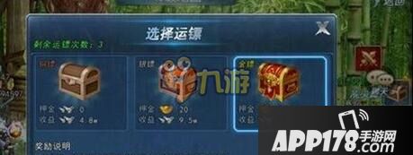 运镖结束时在左上角可以领取宝箱奖励!