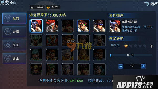 (3)辅将升级需要的英魂可通过将魂兑换商店获得;