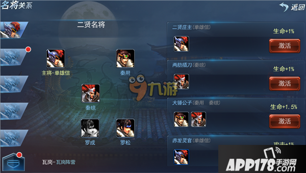 (1)收集每个阵营的辅将,并提升辅将的星级,可激活名将关系;