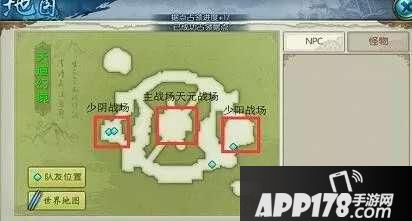 地图共分为三个战场也就是有三个据点,地图中间为主战场天元战场,两边为分战场少阴战场与少阳战场。