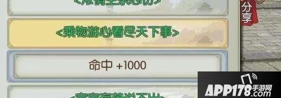 接到任务来找我,我给你个好东西,【乘物游心看尽天下事 命中+1000】。
