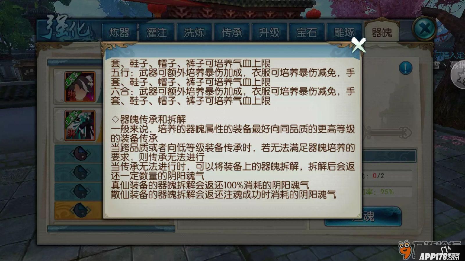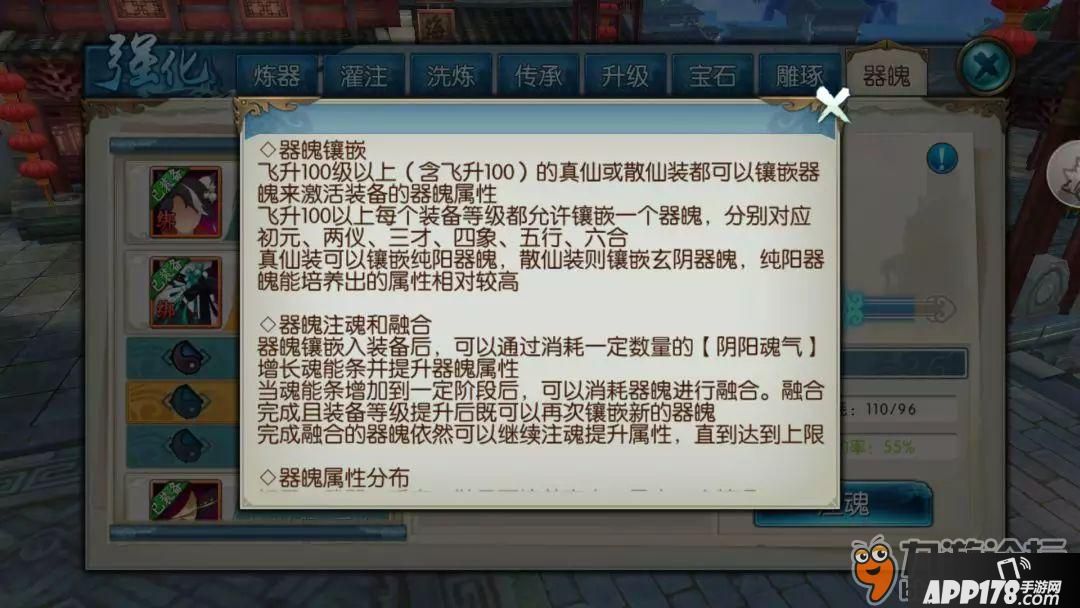 器魄注魂与真仙不同的是,散仙装备注魂存在失败几率,从第一次95%的概率,逐步削减5%概率。