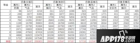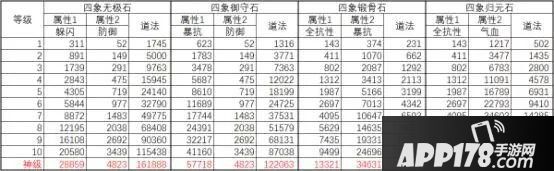 上面的数据中,等级1、3、6、8、10、神级的灵石可以在商城里购买,其他等级需要用前面的灵石进行合成。