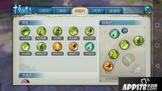 勾选自动施放技能:清新净土、枯木、清音、春风化雨、移花接木、木灵缚、苍灵羽