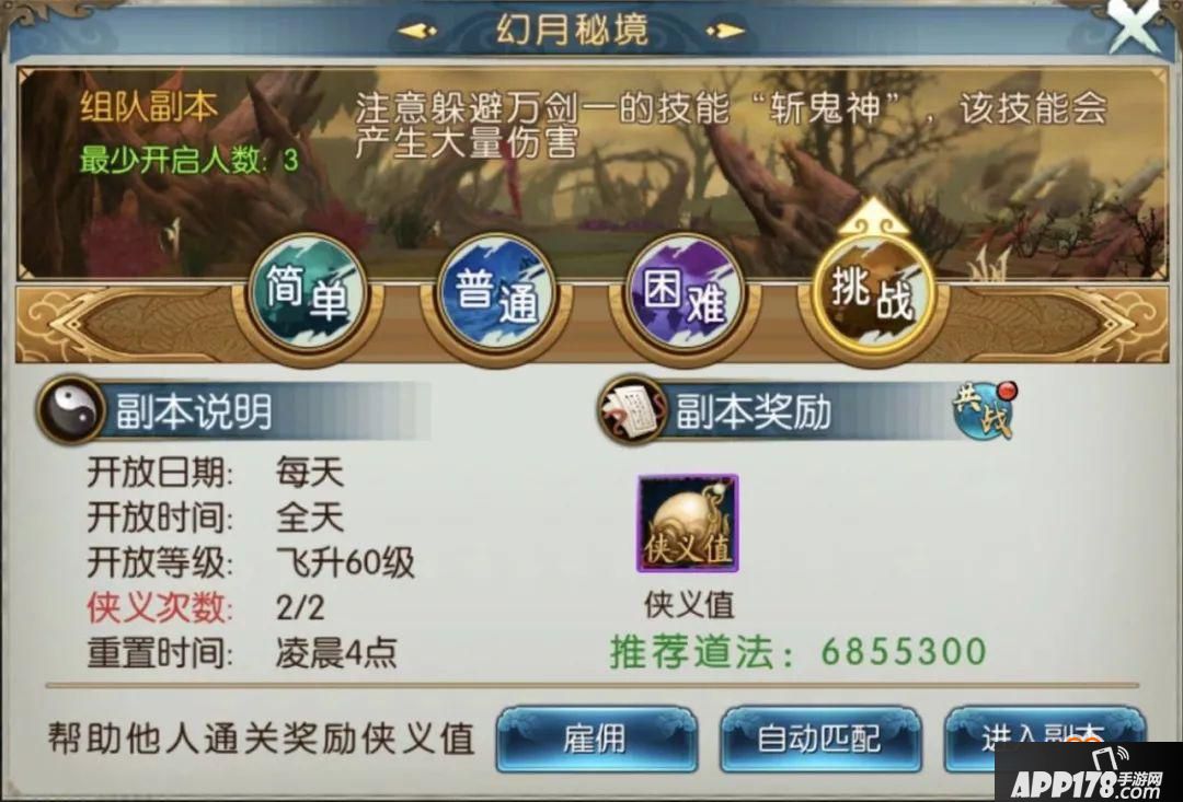 1、玩家已用尽副本次数,帮助未完成副本的玩家完成副本,每个副本额外有2次侠义值副本的次数。