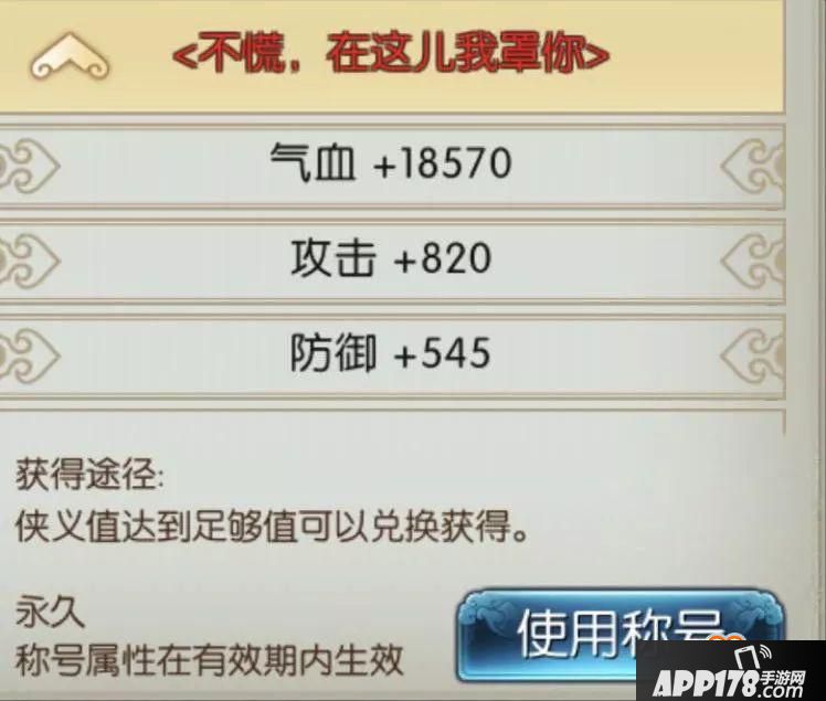 称号颜色为红色,带有属性加成:气血:18570、防御:545、攻击:820