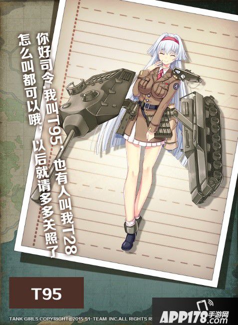 怪兽级坦克少女,危险的眯眯眼,表面很和善,但却是个正面几乎没弱点的人,走路速度是司令部最慢的,出击的话全队都要迁就她,背部意外的很敏感,被摸到的话就会出现有趣的表情,不过有的司令官因此差点丧命.
