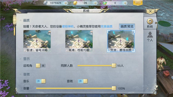 《镇魔曲》手游中的“设备检测”功能也经过多大个类型700多台真机实验获得最佳计算模型,游戏自动检测算法非常准确,并能获得真正适合的画质推荐——极速省电流畅、高清性能均衡和完美最强。《镇魔曲》一直在努力让你的手机获得前所未有的视听体验。