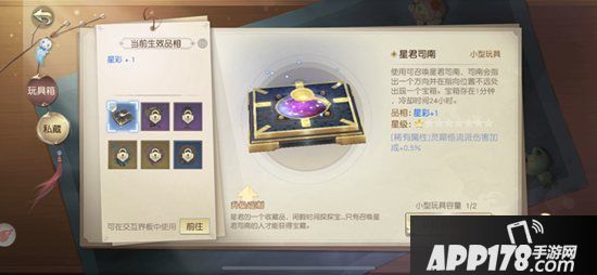 还有福临骰子可以投出去拼点数,和朋友来一场欢乐比试;星君司南则会指引暗藏宝箱的位置,能开出什么来可就不一定咯……首批开放的六种玩具,每一样都有特别的功能与效果,为你带来不同的惊喜!