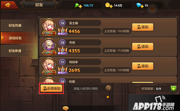 除此之外,召唤师们还能通过ID帐号来添加指定好友~所有添加了的好友将会出现在好友列表中,缺体力的召唤师可有福了~好友之间可以互相赠送体力!好友越多体力越多~还不赶快加起好友!