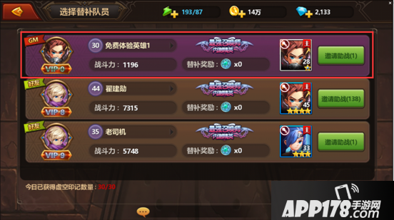 征战的路途上怎能少了肩并肩的伙伴!在选择完关卡后就能挑选一起战斗的伙伴了,可能很多新来的召唤师们不禁会问,刚来新的城市都还没来熟悉怎么会有好友呢?没关系,英雄城可是给各位召唤师们提供了一位永久的伙伴!马上点选他加入自己的团队吧~