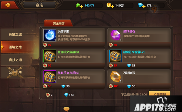 每一次任务完成都会获得珍贵的赏金币作为奖励!收集够了足够多的赏金币就能在赏金商店中采购稀有的商品啦~水晶苹果?英雄魂石?符文宝箱!应有尽有!还不赶快行动?