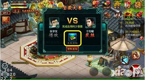 接任务的地方在王城地图的左面,点那个堆满了金银珠宝的聚宝台就可以了。如果玩家找不到的话,可以点屏幕左侧“升级快”按钮里面的“宝藏”直接寻路过去。