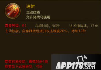 以上就是小编为大家带来的征途手游速射技能介绍,希望大家喜欢。更多精彩的游戏攻略,敬请继续关注APP178手游网。