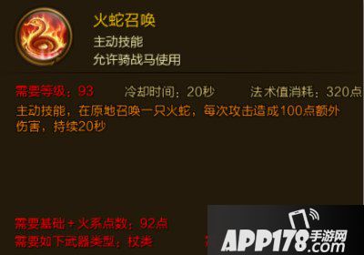 以上就是小编为大家带来的征途手游火蛇召唤技能介绍,希望大家喜欢。更多精彩的游戏攻略,敬请继续关注APP178手游网。