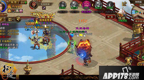 前言:《征途手机版》神将殿玩法想要获得超等奖励,就要在拿到紫色BOSS积分的同时,抢到对方的BOSS积分。所以打的顺序是先击杀成群的天兵小怪和守卫;然后抢对方的BOSS积分;接下来将紫色BOSS拉到本方黄色BOSS处一起击杀。击杀本方黄色BOSS后,将紫色BOSS拉回本方复活点。