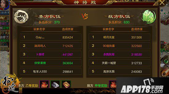 每10人一组,两组玩家在神将殿地图中击杀怪物,获得积分。积分决定评价等级,评价等级越高,奖励越丰厚,活动结束时积分高的队伍获得胜利。