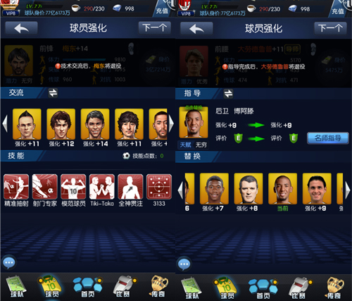 通过《最佳阵容》的合体系统,玩家们可以将+11以上的神话球员进行合体。合体后保留一位神话球员,被合体球员属性或技能可以传递给合成球员。这意味着当你拥有如梅西,盖伊的名将,将能合出一个集合金球之王所有天赋的绿茵球场妖童。若是你在游戏中能获得贝利和马拉多纳,那么你将获得一位专属于你的独特球王。这位结合两位球王的技能的恐怖存在,无疑将成为争霸绿茵场冠军一大助力。