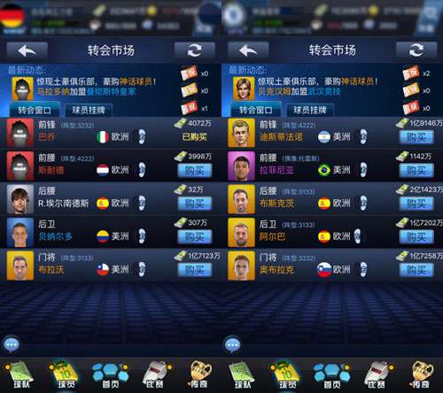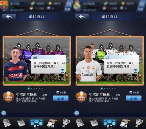 在开始接触传奇与神话球员之后,玩家们就要开始考虑整体阵容的搭配选择了。《最佳阵容》中,大致分为空中与地面两大流派。在空流中,拥有“长传冲吊”、“倒挂金钩”、“头球暴扣”等技能的球员是球队的核心,这就需要玩家在游戏中前期尽早刷出J罗、贝尔等既好用有容易入手的神话球员;在地流中,“地面直塞”、“精准抽射”、“暴力抽射”等技能的球员则成了球队的核心,如果能够第一时间入手梅西、内马尔的话,足以让你的进攻如虎添翼!