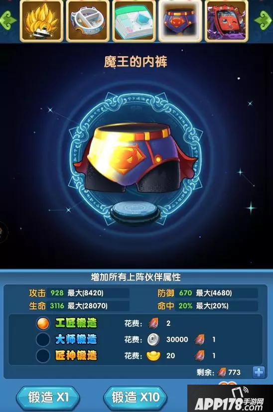 法宝增加四项属性,基础的有攻击、生命、防御,然后加一个特色属性,魔王假发的特色属性是增加伤害,魔王的食盆特色属性是减少伤害,魔王的配置表特色属性是闪避,魔王的内裤(没错你没看错,这也是法宝)特色属性是命中,魔王的手机特色属性是暴击伤害。