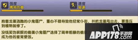 以上便是小编我为大家带来得植物大战僵尸2偷蛋小僵尸属性介绍。希望能给玩家们带来一定的帮助。更多精彩资讯还请关注APP178手游网。
