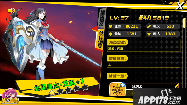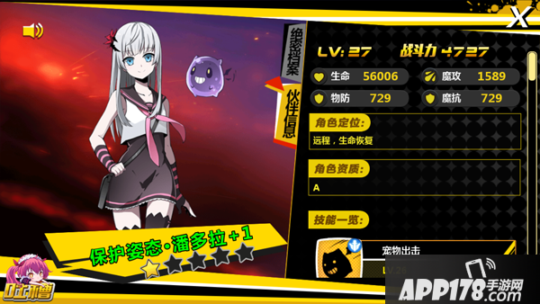 我方小伙伴的角色信息界面,可以看到该小伙伴的战斗定位。先来看一下主线有送的皮糙肉厚的坦克……等等,你敢说这样的妹子皮糙肉厚?想死喔。