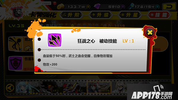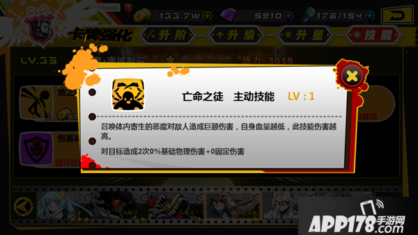 这就是南城的核心技能……亡命之徒!对敌方单体造成巨额伤害(不要在意伤害为0的细节,咱还没给他升级呢~),而且是自身血量越低伤害越高,这下懂了为啥叫狂战了吧,越濒死,越强大!