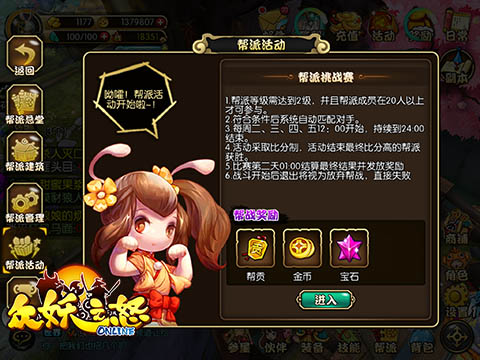 游戏里找到了心仪的TA,干脆就召集四方好友建个帮派,大家在一起游戏不是更有乐趣吗?而且《众妖之怒》中的帮派可不仅仅只为玩家提供了一个交流的平台,诸多帮派辅助技能也会随着帮派等级的提升效果愈加强大,让玩家的实力得到极大提升。而帮派挑战赛更是让帮派成员可以携手作战,享受更加宏大、激烈的荣耀之争。