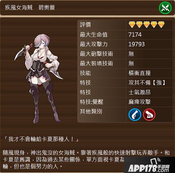 推荐海贼:首选绿双刀阿修蕾、碧奥蕾,之后是蓝双刀闪电。因为蓝盾数量较多的缘故,绿双刀显得尤为重要。