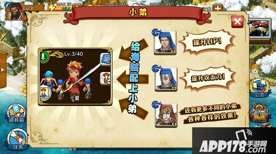 小弟是《战之海贼》中提升战力很重要的一部分,合适的小弟搭配给合适的海贼,将会起到事半功倍的作用。