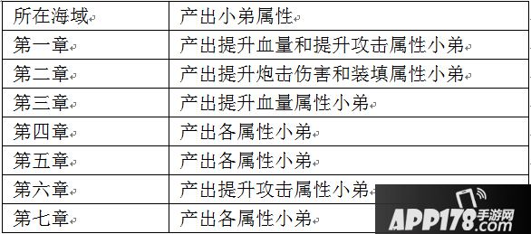 小弟的产出是有一定规律的,在不同的篇章海域中,产出小弟的属性也不同。