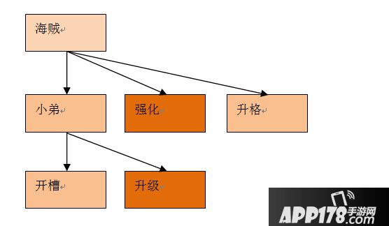 战之海贼的主要战斗力无非就是海贼和战船的培养。宝宝我简单的梳理了他们的构成,颜色较深的是需要着重培养的部分。