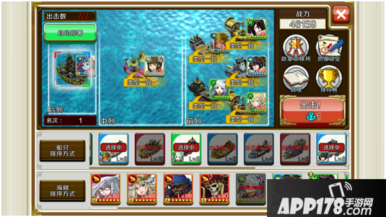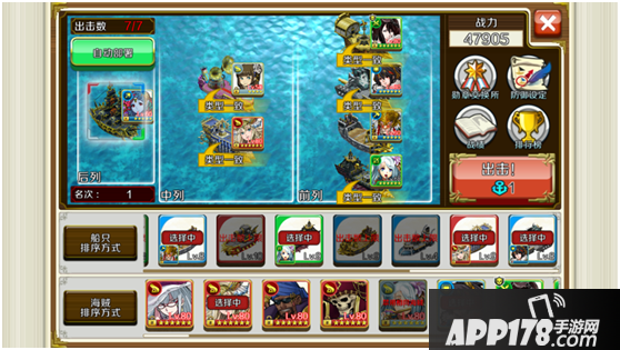 战之海贼的【对人战】和【大海战】是游戏PVP内容,其中阵型搭配是游戏最有意思也是相对比较复杂的地方,搭配得好【对人战】和【大海战】能够赢比自己战力相差10000-20000的对手,首先先介绍一下船的特性。
