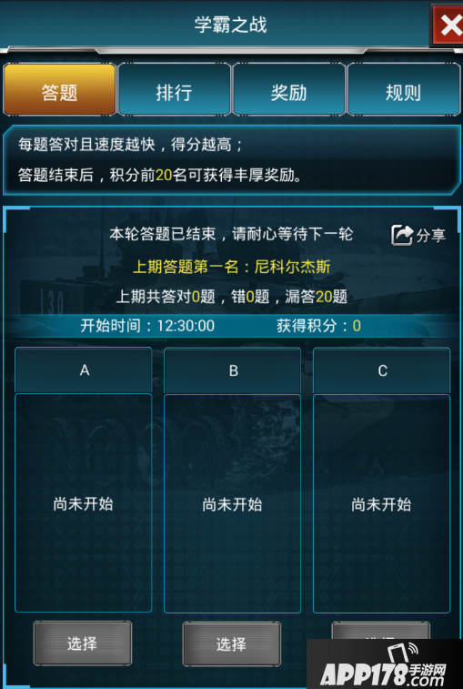 1.活动每天12:30开启, 共计20题;