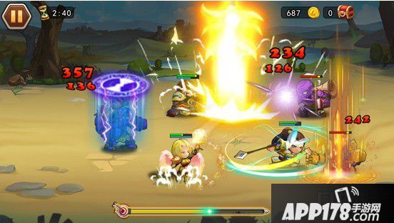 在征战中,每方同时最多出战5名英雄, 英雄在战场上会自动走位,自动选择攻击目标。