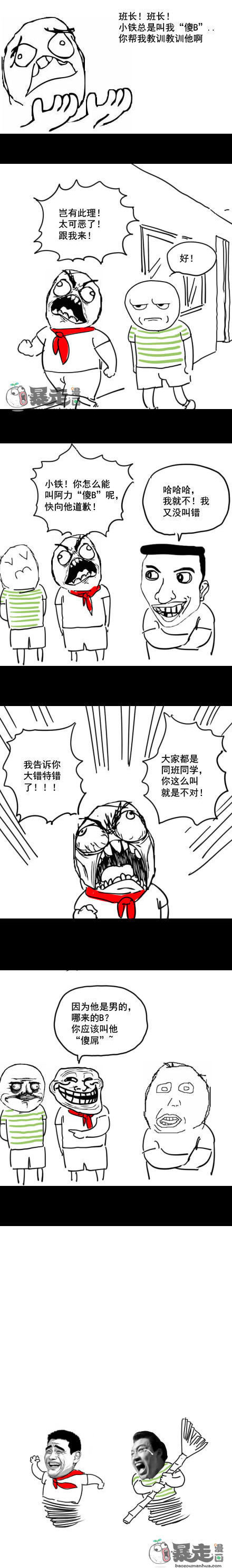 小编今天为大家带来一组暴走漫画之正义的班长,小伙伴们都知道在班级上除了班主任讲的话是有威严的之外,第二大的莫非班长了,班长班长一班之长。小伙伴们知道尼玛班长是怎样管制班级同学之间不友爱之风的吗?话不多说,接下来,就让我们一起来欣赏这组暴走漫画之正义的班长,小编提议各位小伙伴们,这组内涵漫画中,班长尼玛的做法是不对,我们不值得提倡哦!