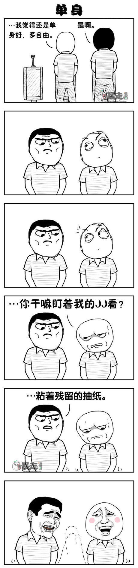 现如今,仍有众多屌丝男和腐女们是单身患者,可是,尼玛却觉得单身反而时间好事,起码自由。在今天小编为大家带来的是一组暴走漫画之单身,小编看完只想说句,小编又被内涵住了,话不多说,小伙伴们还是快和小编一起来看看这组暴走漫画之单身,一起来看看那尼玛的单身生活吧!