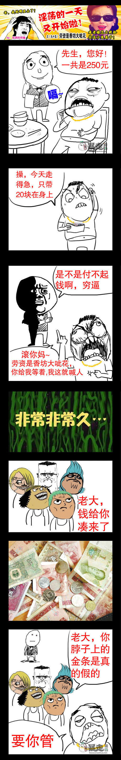 尼玛可真是个爱吹牛的家伙,小编看到这场景都看不下去了,就像尼玛说句:尼玛,咋能别这么作吗?小伙伴们你们想知道尼玛又发生了幽默诙谐的搞笑故事吗?那就快来欣赏这组小编今天为大家带来的这组,淫荡一天又开始啦系列之劳资是香坊大呲花暴走漫画,看完就知道为何小编会出此狂言了。小编在这唠叨句:说出去的话就像泼出去的水,是收不回来的。饭可以乱吃但这话可不能乱说啊!