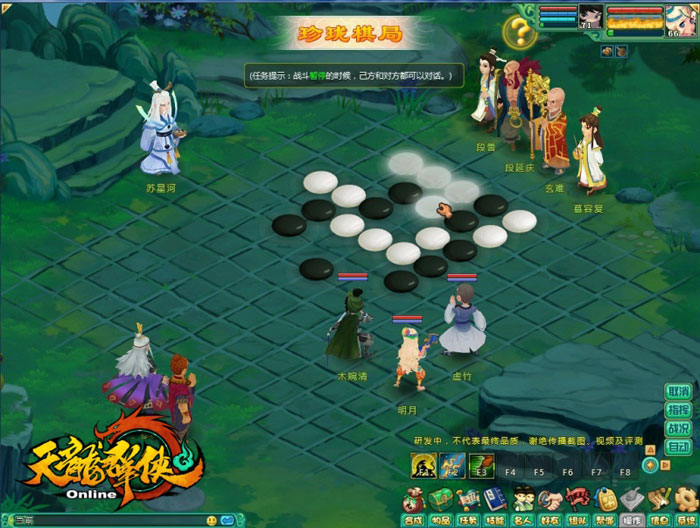 《天龙群侠OL》是一款2D回合网游,《天龙群侠OL》一直都以创新为准则。游戏不仅将围棋纳入游戏中,还将卡牌战斗等纳入到游戏中去,一起来看看这些创意战斗的截图吧!