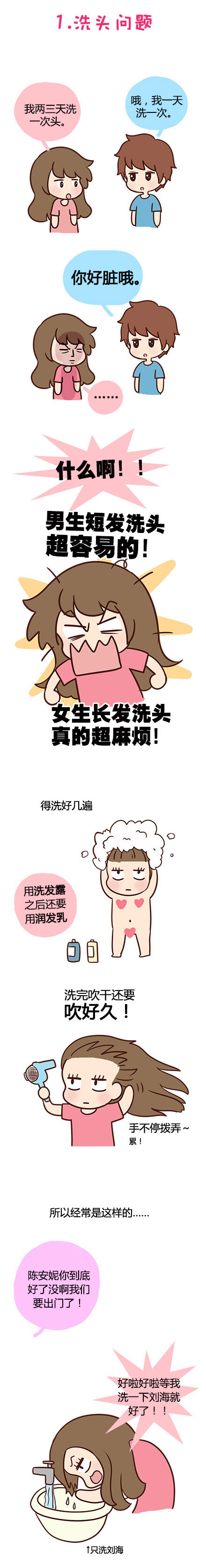 微博漫画精选之男生根本不会懂女生头发的痛(1/6)