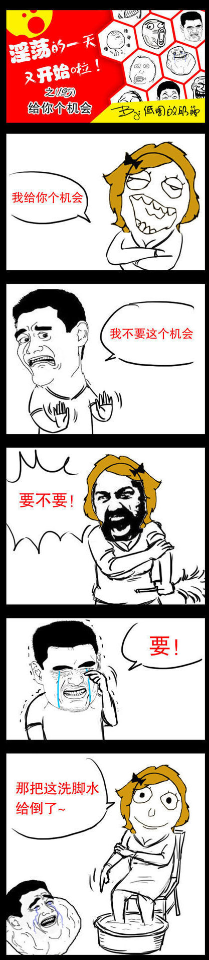 俗话说的好,机会是靠人争取的来的,有机会就有竞争,有机会就表示一切不可能的事都有可能发生转机,有机会就表示离成功就更近了一步,但也往往有很多不求上进的人们,只想等着“机会”自己来送上门,小编只想对这种人说句:继续做你的白日梦去吧!今天小编为大家带来的是一组淫荡的一天又开始啦系列之给你个机会暴走漫画,小伙伴们想知道这其中都发生了什么有趣的逗比事件吗?那么话不多说,想知道的小伙伴们就赶紧来看看这组暴走漫画吧,看完就知道啦!