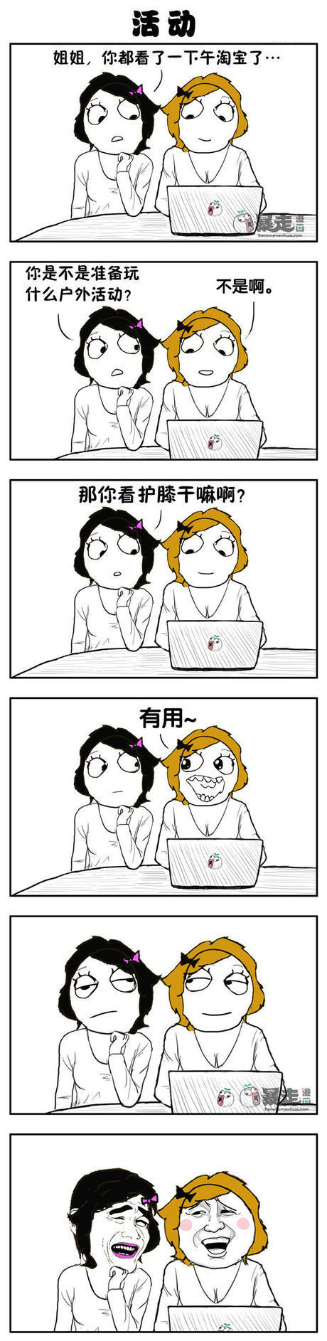 今天小编为大家带来的是一组暴走漫画之有用,在今天的这组暴走漫画之有用中,尼美和尼美妹妹两人在网上购物,尼美却一直再看护膝,尼美的妹妹以为尼美是要准备什么户外运动才看这类东西的,但殊不知 小伙伴们你们知道这都是怎么一回事儿吗?其实小编也是感到很疑惑呢?那么接下来,就让我们一起来看看这组暴走漫画之有用,看完就知道啦!