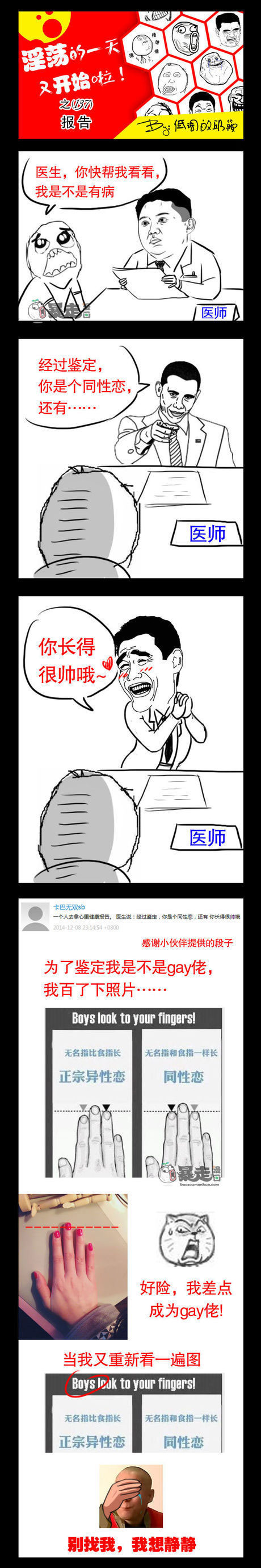 虽然现在的同性恋恋爱已经不足为奇了,但是小伙伴们,你们知道怎样预测知道自己将来?以后?会不会成为同性恋族群其中的一员吗?小伙伴们你们想知道吗?别急别急,今天小编为大家带来的这组,淫荡的一天又开始啦系列之报告暴走漫画中,就有方法。话不多说,小伙伴们快来围观吧!